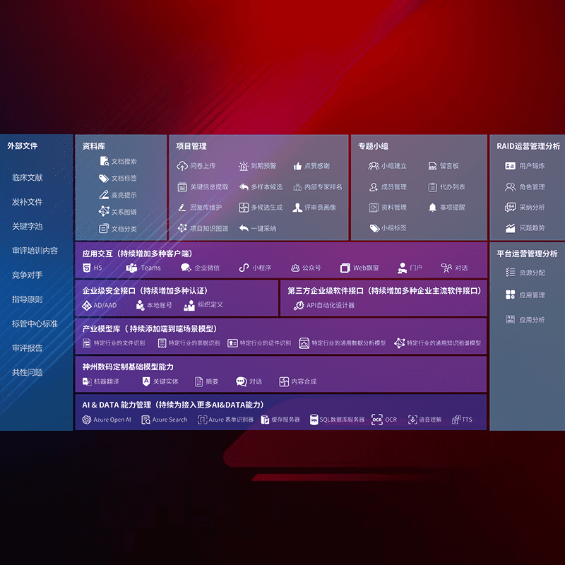 医疗器械产品上市前,,,,要熟悉严格与繁复评审标准,,整理分析监管机构指导文件中的海量信息。。。企业急需一个智能化解决方案,,,提升知识管理效率,,,提高评审通过率,,,以提升其市场竞争力。。